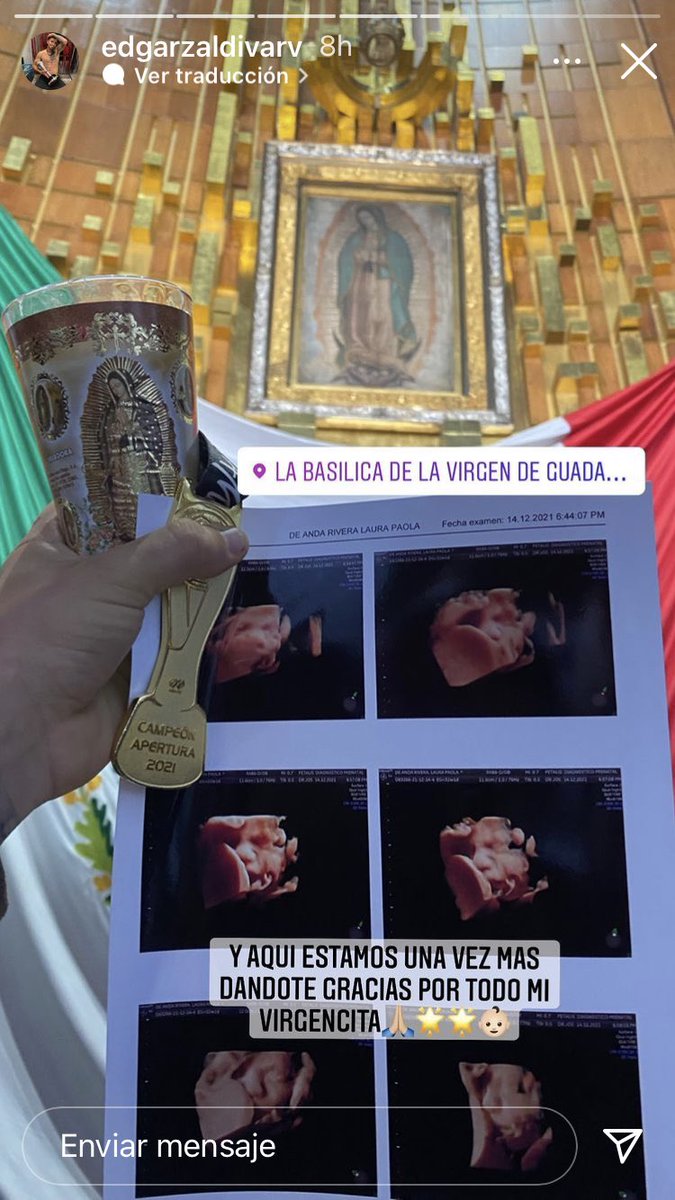 "Y aquí estamos una vez más dándote las gracias por todo, mi virgencita", fue el mensaje con el que el originario de San Luis Potosí acompañó la instantánea, misma en la que se aprecian las imágenes del ultrasonido de su bebé que está próximo a nacer.