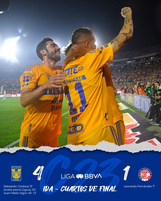 Finalmente, tras la sorprendente victoria 4-1 de los Tigres de la UANL (7) ante los Diablos del Toluca (4). Los Felinos podrían sufrir una derrota por dos goles en el Estadio Nemesio Diez y aún así avanzar. Mientras que los de Nacho Ambriz buscarán la hazaña de anotar tres goles en casa para entrar a Semifinales por su favorable posición en la tabla general.