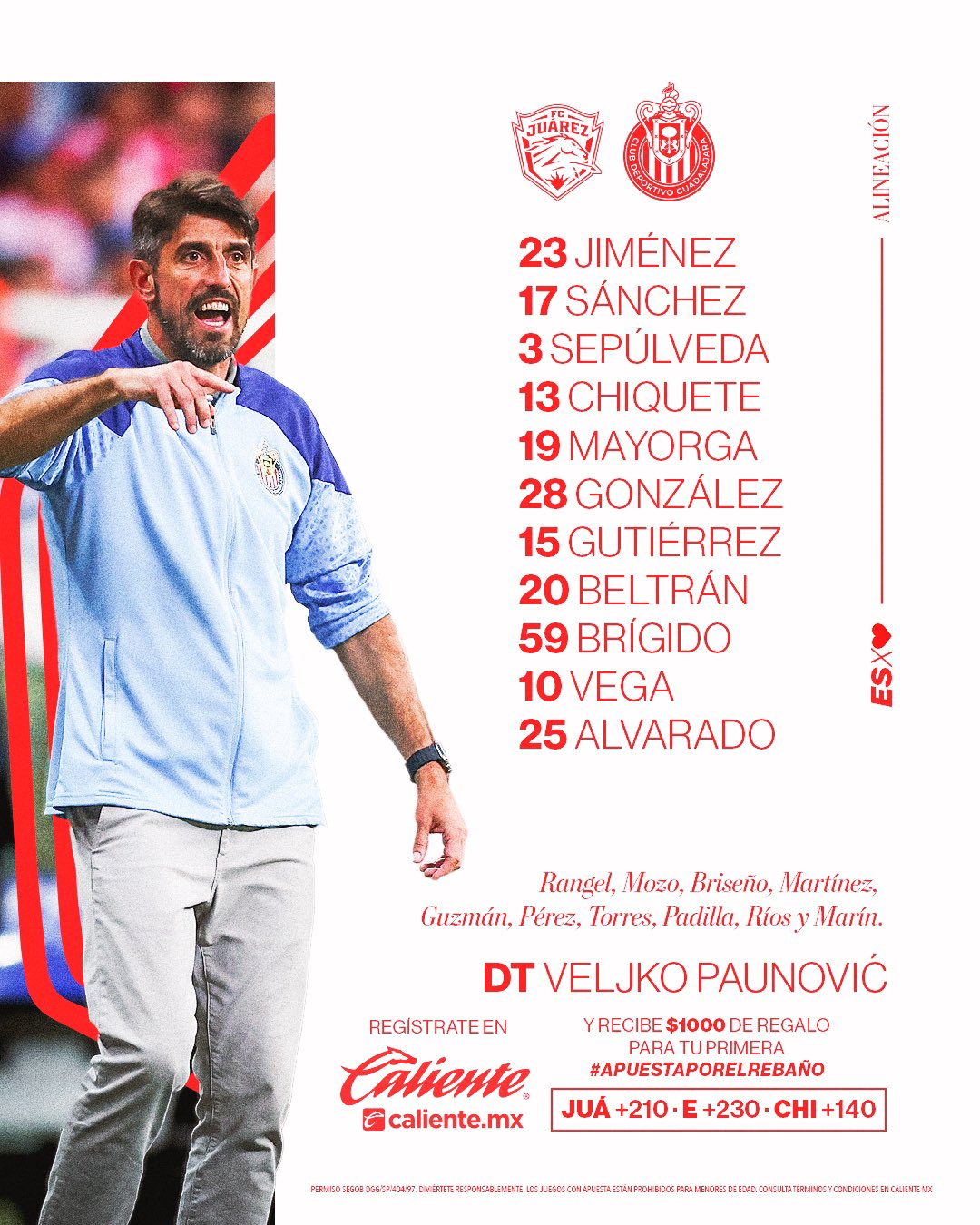 El Apertura 2023 está de regreso y Chivas buscará mantenerse en la cima cuando visite a FC Juárez en el Olímpico Benito Juárez. Veljko Paunovic presentó algunas modificaciones en su once inicial.