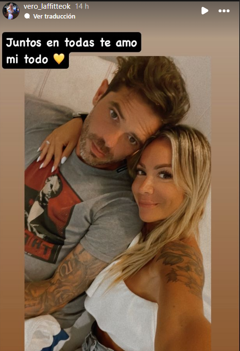 La fotografía que posteó la compañera del DT se les puede ver a los dos abrazados; la instantánea fue acompañada con el texto: “Juntos en todas, te amo mi todo“ y un emoji de corazón amarillo, color que sin duda identifica a Boca.