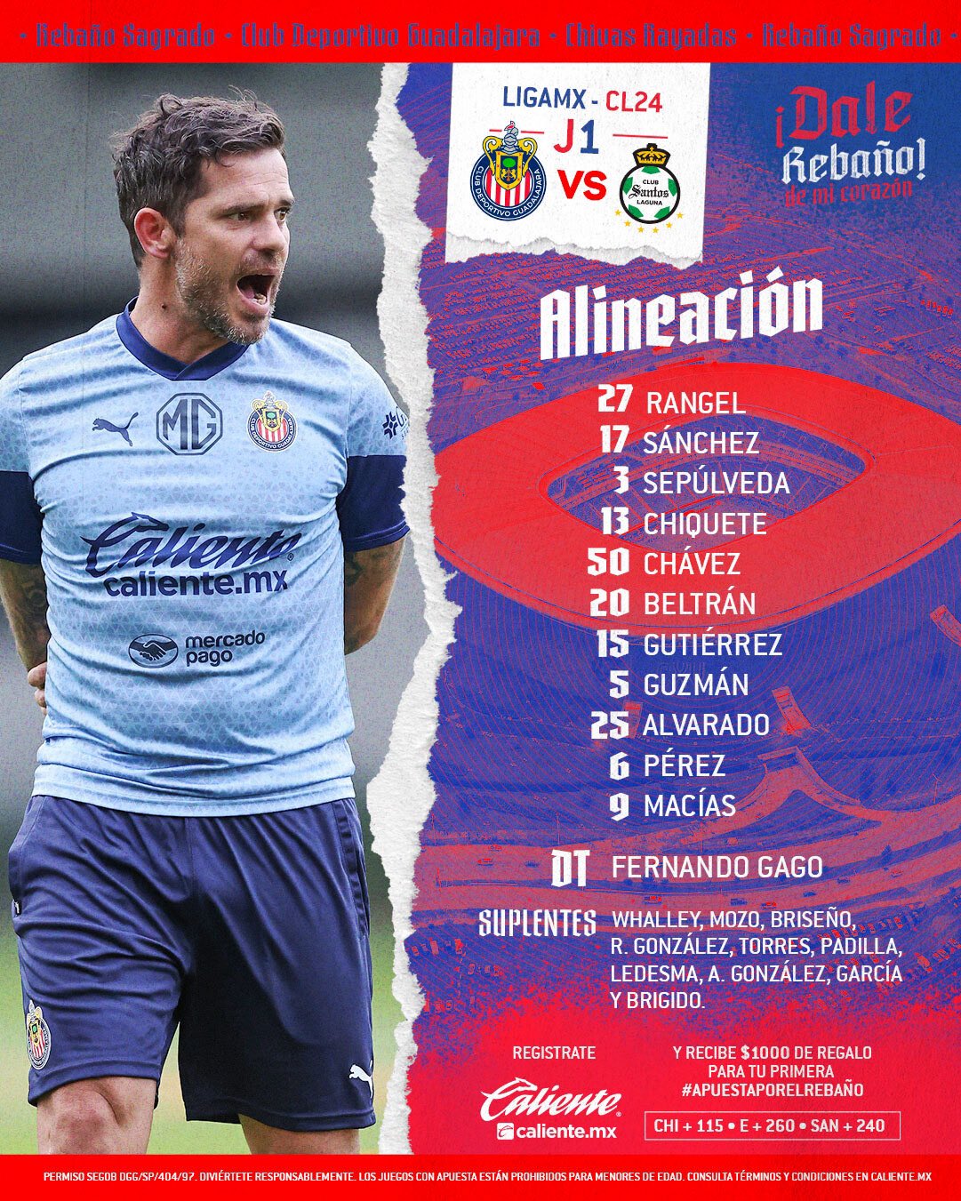 Las Chivas reciben a Santos Laguna en punto de las 19:05 horas en el Estadio Akron como parte de la Jornada 1 del Clausura 2024.