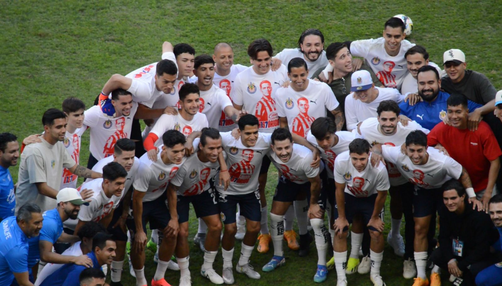 Posteriormente, el plantel completo de Chivas se tomó foto con el futbolista que levantó una Liga MX, dos Copa MX, una Supercopa MX y una Concachampions durante su carrera.