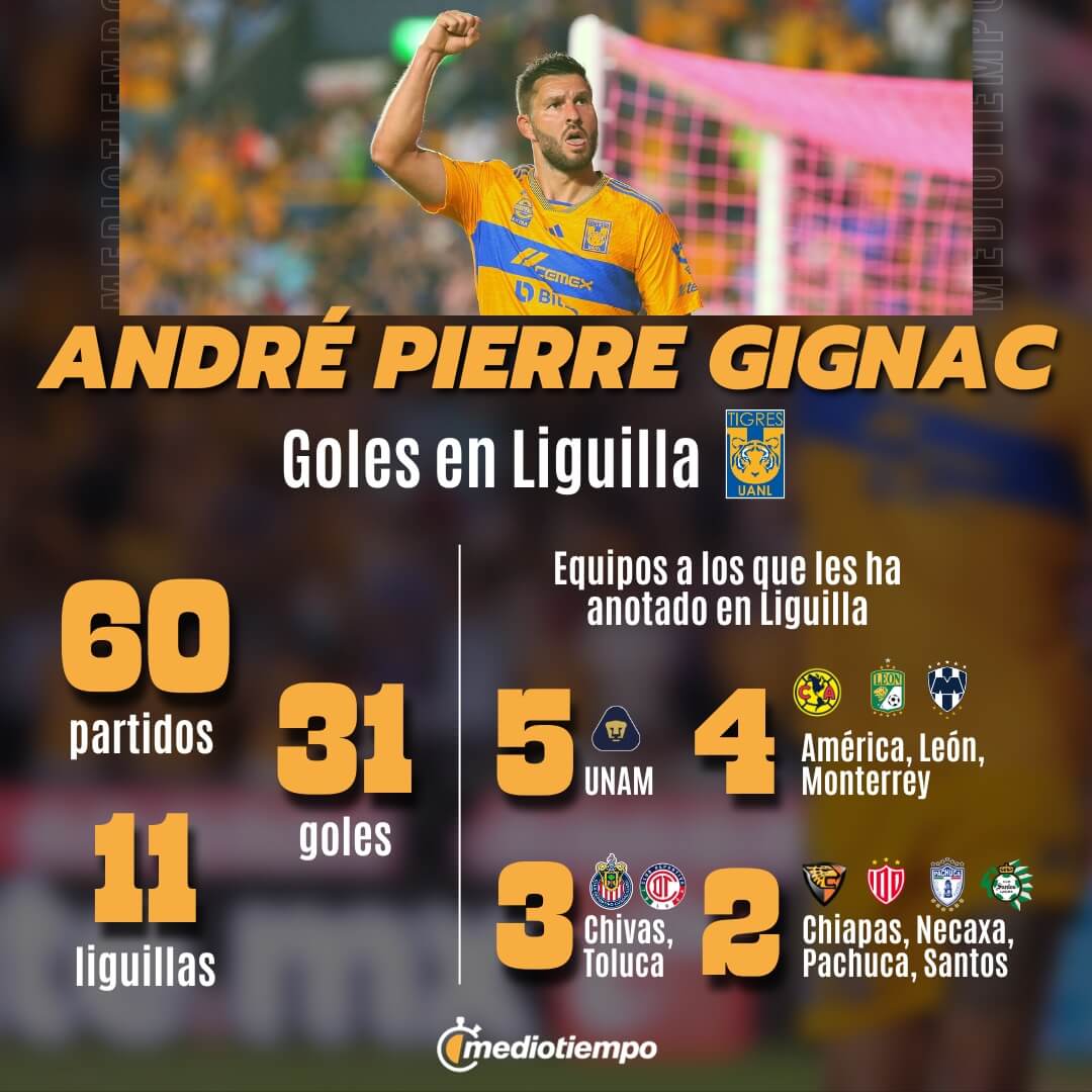 Gignac llegó al futbol mexicano en el Apertura 2015 y desde entonces fue pieza clave para ganar cinco títulos de Liga MX en ocho años, apareciendo siempre en la fase regular y en las Liguillas, donde ya suma 31 goles en 60 juegos de dicha fase.