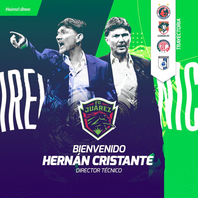 En menos de un mes el director técnico, Hernán Cristante cambió de banquillo, y luego de dirigir por 10 partidos a los Gallos Blancos, esta tarde fue presentado como entrenador del FC Juárez, el equipo que terminó en el último lugar de la tabla porcentual.