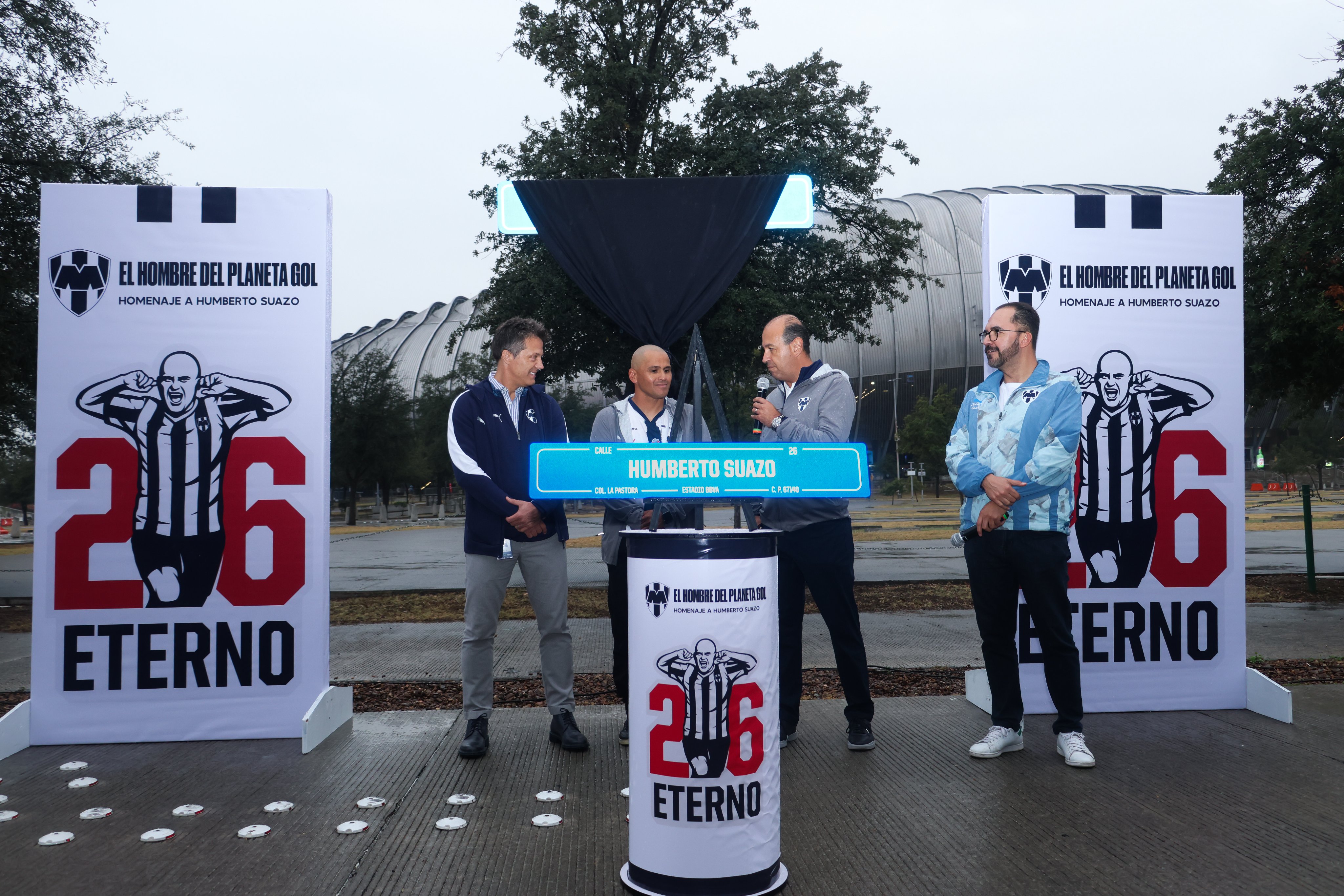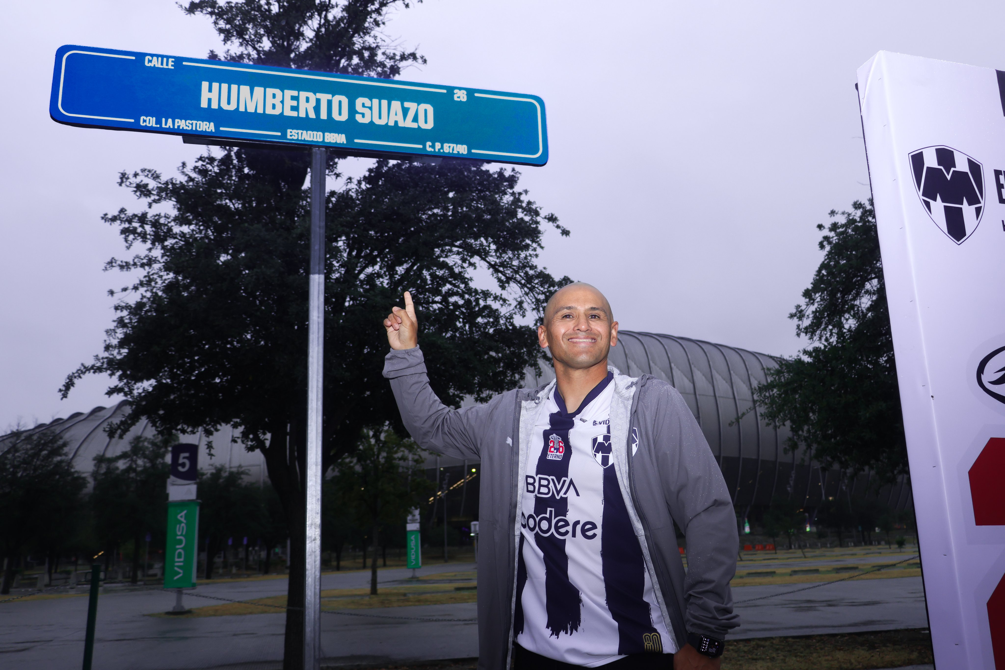 Humberto Suazo recién anunció su retiro y viajó a Monterrey para ser homenajeado por Rayados previo al duelo contra América en los Cuartos de Final de Ida del Apertura 2025, donde una calle del Gigante de Acero lleva ya su nombre.