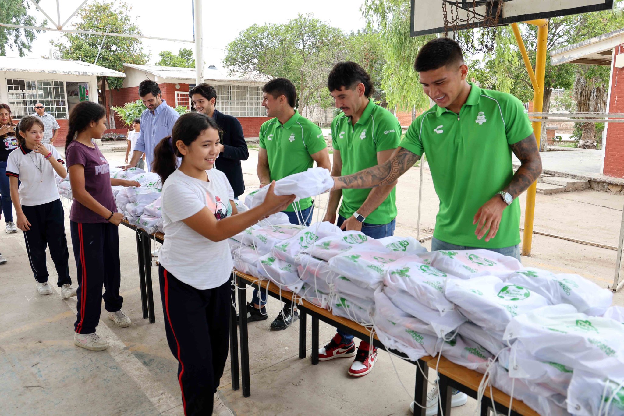 Jugadores del Santos repartieron útiles