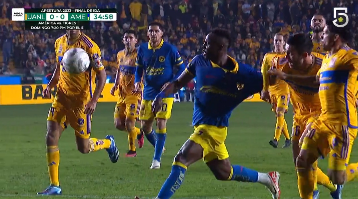 En la jugada sobre el seleccionado mexicano, las Águilas reclamaron un jalón por parte de Juan Pablo Vigón sobre su delantero, pero ni Marco Antonio Ortiz, ni el VAR, decidieron marcar la pena máxima.