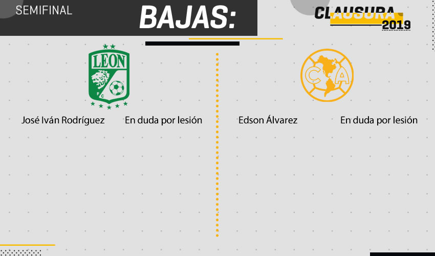 Del lado del equipo esmeralda, la duda es el contención José Iván Rodríguez, quien incluso de último minuto se perdió la Ida en Querétaro por un esguince de primer grado en el tobillo, por lo que de nueva cuenta podría ir Rubens Sambueza como titular.