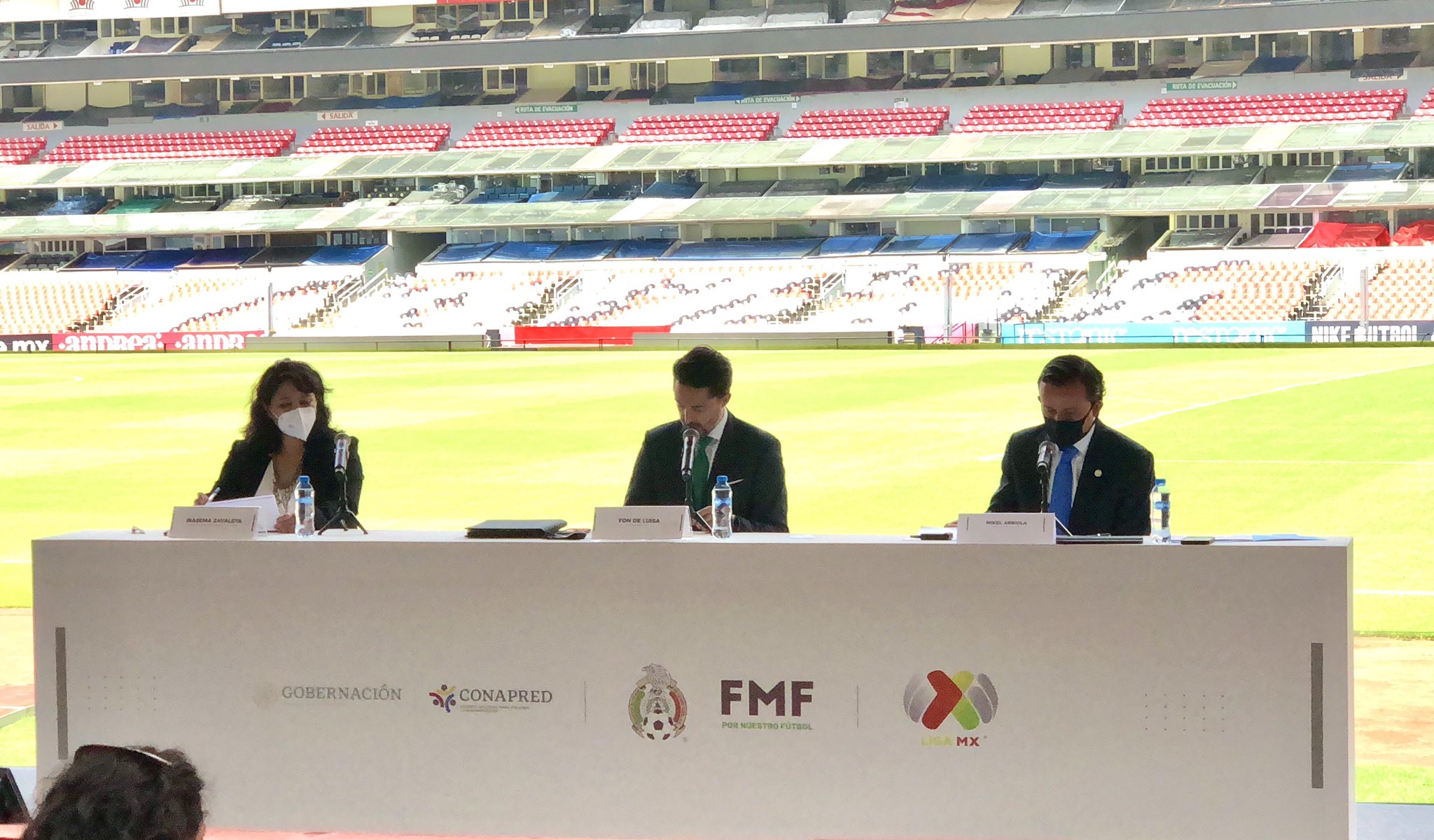 Arriola también atendió una conferencia de prensa el día miércoles en el que convivió con Yon de Luisa, presidente de la Federación Mexicana de Futbol, así como con Irasema Zavaleta, encargada de Despacho de la Presidencia del CONAPRED.
