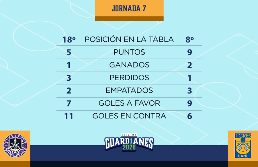 Mientras que el cuadro de la UANL está en la octava posición con nueve puntos, un saldo que tienen gracias a dos ganados, tres empates y una derrota. En la fecha 6 empataron a un gol contra Pumas, y han sido muy cuestionados por su nula capacidad en táctica fija y para aguantar los resultados.