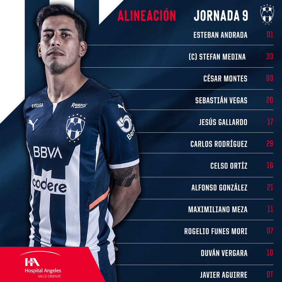 Monterrey: Andrada, Montes, Gallardo, Vegas, Medina, Meza, Ortíz, González, Rodríguez, Funes Mori y Vergara.