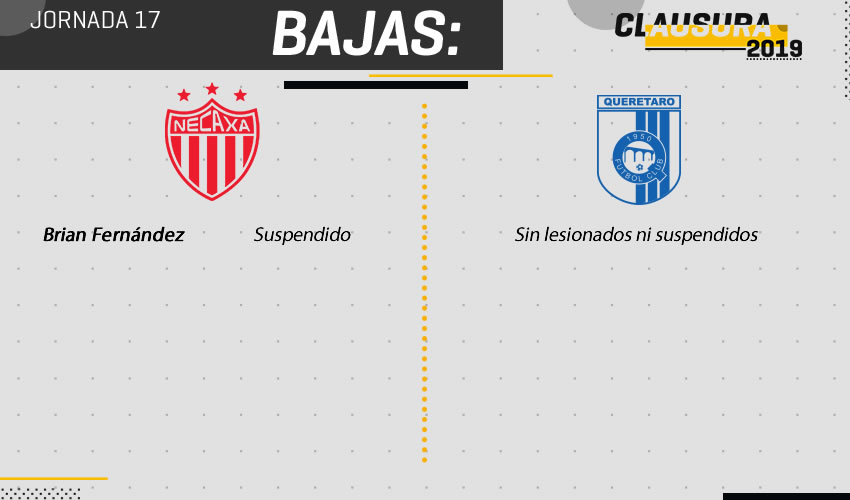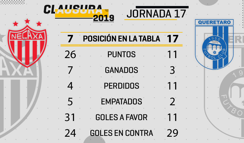 En la última jornada del Clausura 2019, Necaxa tendrá que sacar el triunfo este sábado para no pasar sustos y perder posiciones de cara a la Liguilla; en el caso de Querétaro, uno de los peores del campeonato, buscará cerrar de mejor manera, pero sobre todo pensando en tomar aire para la problemática porcentual del siguiente año futbolístico.