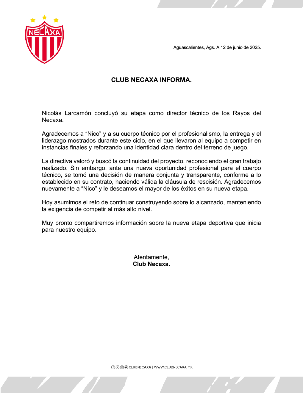 Sin embargo, la mañana de este jueves ya hizo oficial la separación en un comunicado en el que aclaró que la salida se dio conforme a lo estipulado en el contrato, esto a pesar de que buscaron que continuara dentro de la institución.