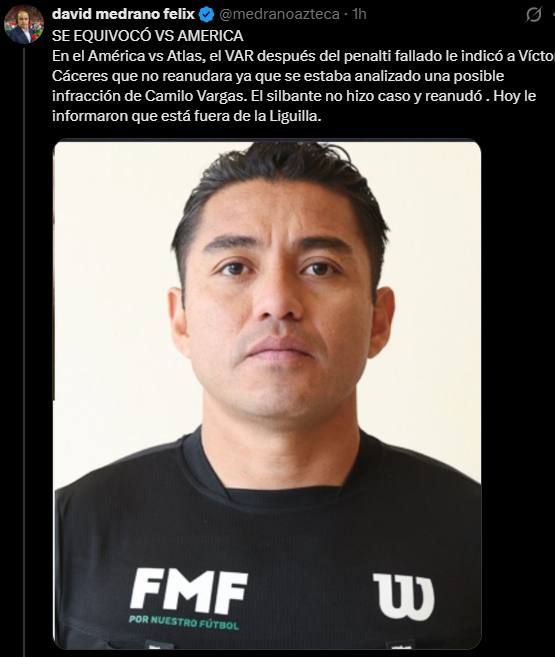 David Medrano, columnista de mediotiempo, dio a conocer que el árbitro central no pitará en la próxima Fiesta Grande debido a que no hizo caso a una petición del VAR.