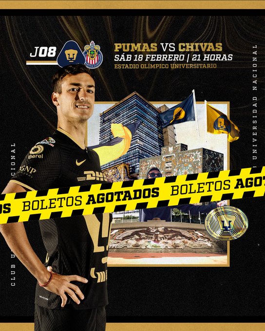 Pumas anunció en sus redes sociales que los boletos para el partido entre Chivas y felinos están agotados para el duelo que está programado para las 21:05 horas de este sábado 18 de febrero. Cabe recordar que Pumas suele disputar sus partidos al mediodía de los domingos.