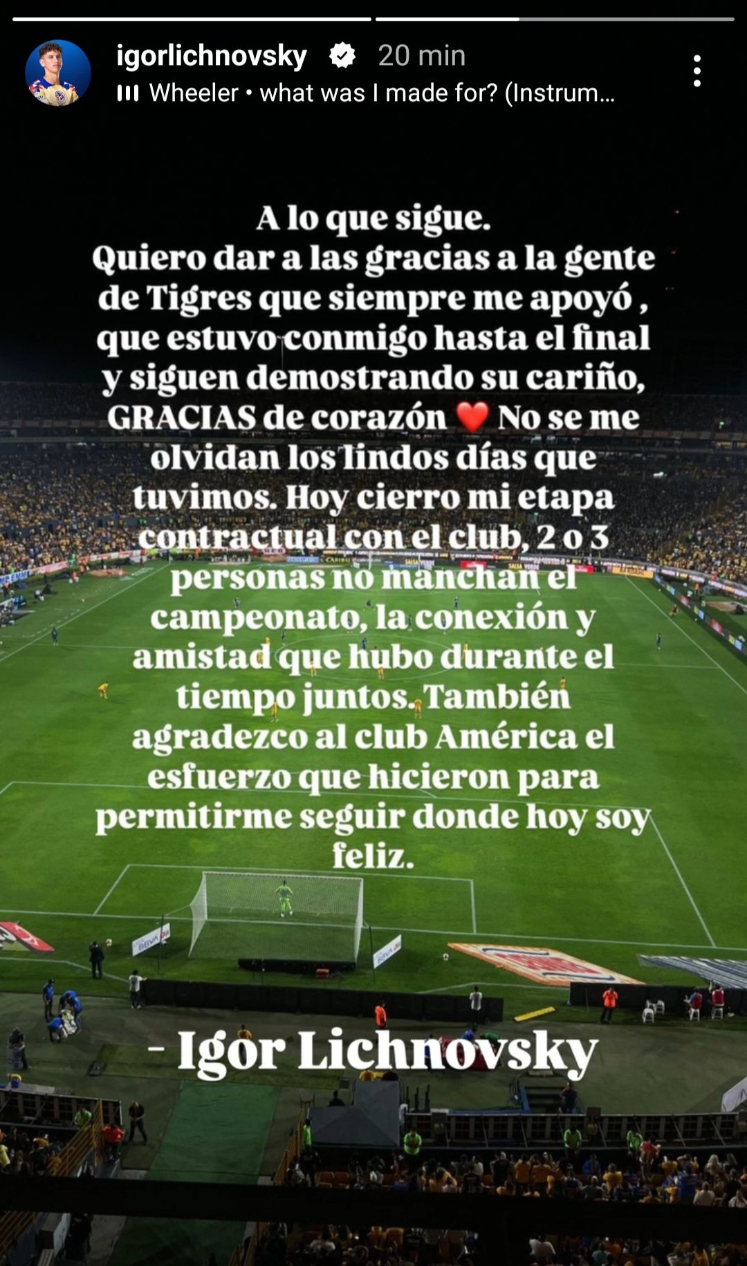Posterior al anuncio americanista, Lichnovsky se despidió de Tigres y agradeció por los momentos buenos que vivieron, los cuales que no serán manchados por "dos o tres personas"