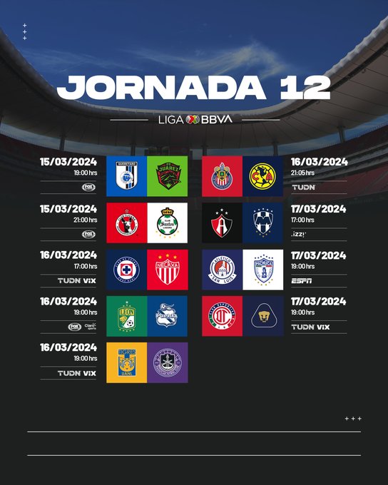 A continuación, te presentamos los horarios y canales de transmisión para que no te pierdas ningún partido de la Jornada 12 del Clausura 2024: