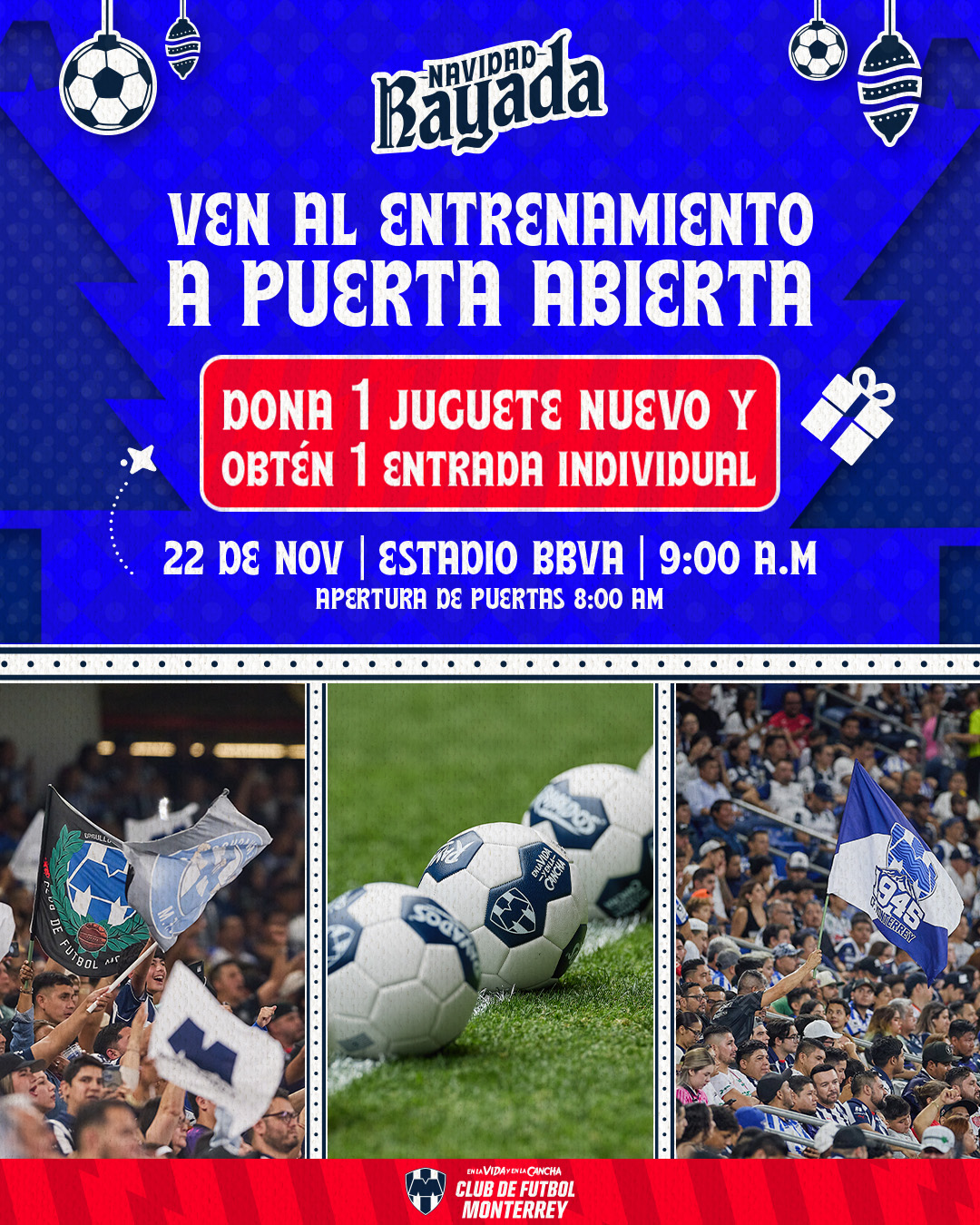 El Club de Futbol Monterrey abrirá las puertas a sus aficionados para el entrenamiento que sostendrá este sábado en el Gigante de Acero, aunque con la particularidad de que se deberá entregar un juguete para poder ingresar.