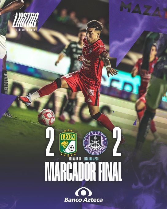 León desaprovechó la oportunidad de subir en la tabla de clasificación y luego de ir ganando 2-0 se vio empatado por un Mazatlán que no dejó de pelear hasta el final del partido para conseguir un 2-2, un marcador que poco le sirve a ambos equipo.