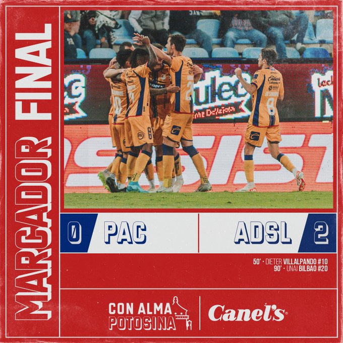 El sorpresivo conjunto potosino se impuso 2-0 a los Tuzos, que a media semana le ganaron en la misma cancha del Estadio Hidalgo a Cruz Azul, con goles de Dieter Villalpando jugador formado en las Fuerzas Básicas hidalguenses y de Unai Bilbao, que convirtió una pena máxima sobre los minutos finales del encuentro.