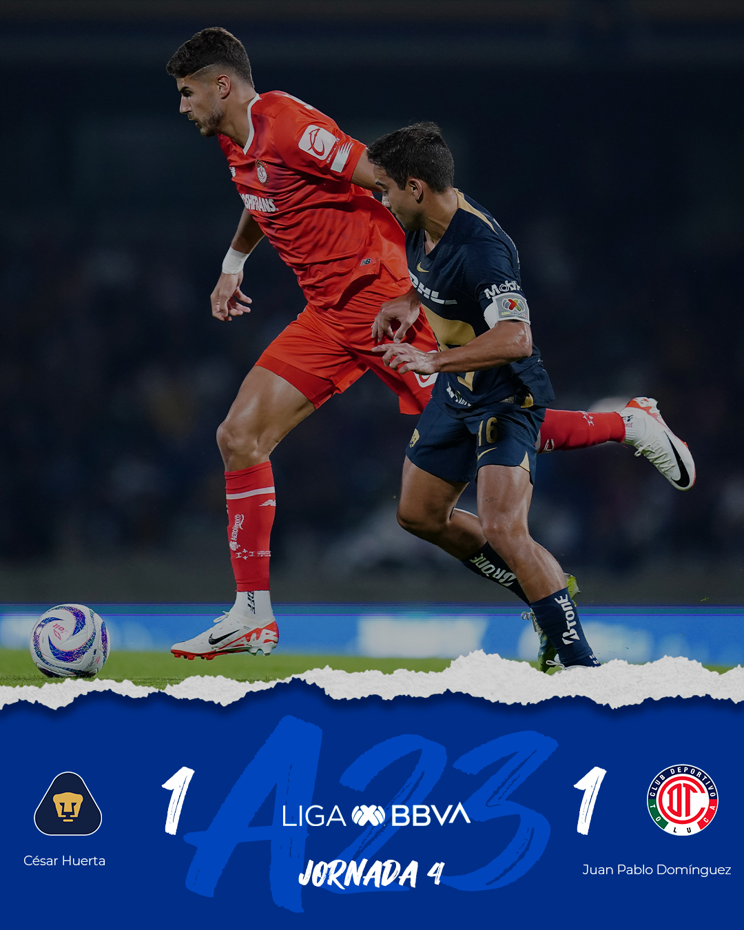 Pumas de la UNAM y Diablos Rojos del Toluca protagonizaron un partido destacado en el duelo de la jornada 4 del Torneo Apertura 2023 de Liga MX, en el que Juan Domínguez y César Huerta fueron los encargados de llenar de alegría a sus respectivas aficiones.