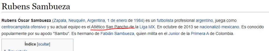 La llegada de Sambueza a Pumas no fue la única 'broma' de la Wikipedia, pues alguien editó su biografía para colocarlo como futbolista de 'Atlético San Pancho', equipo de ficción de la famosa película del mismo nombre.