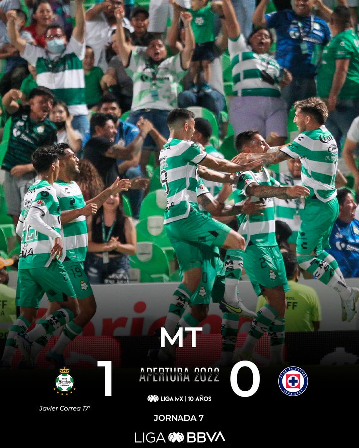Santos 1-0 Cruz Azul#LigaBBVAMX ⚽ #CreandoOportunidades pic.twitter.com/MEX2CvArnB