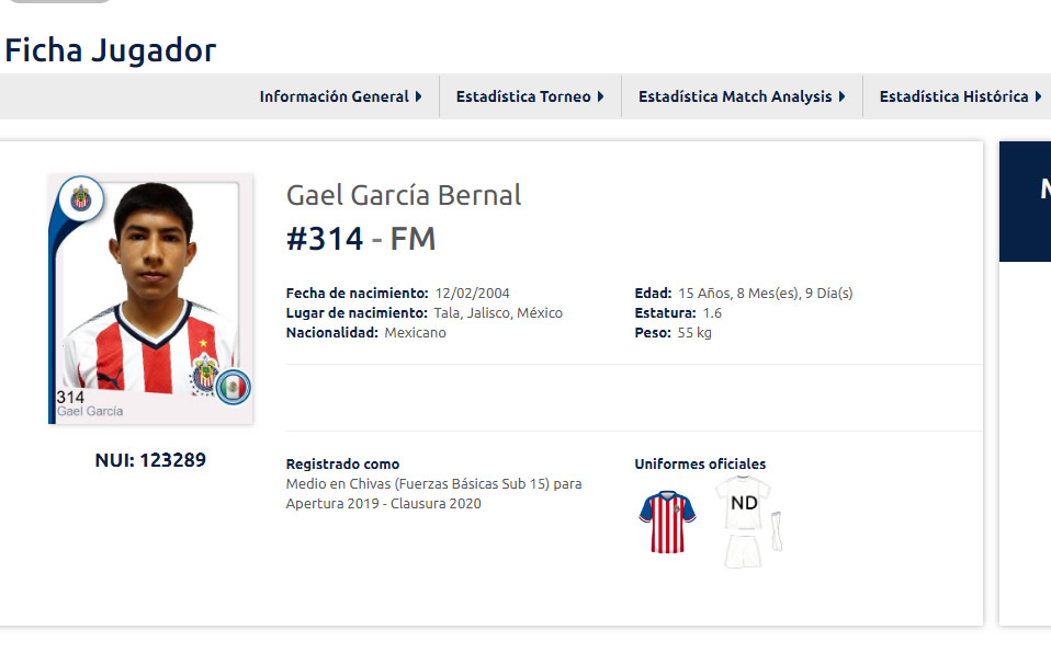 ¡Convocatoria de nivel "Hollywoodense"! En la Selección Mexicana citaron a Gael García Bernal; sí, así se llama un jugador de Chivas que forma parte del combinado nacional Sub-15 que concentró en el CAR.