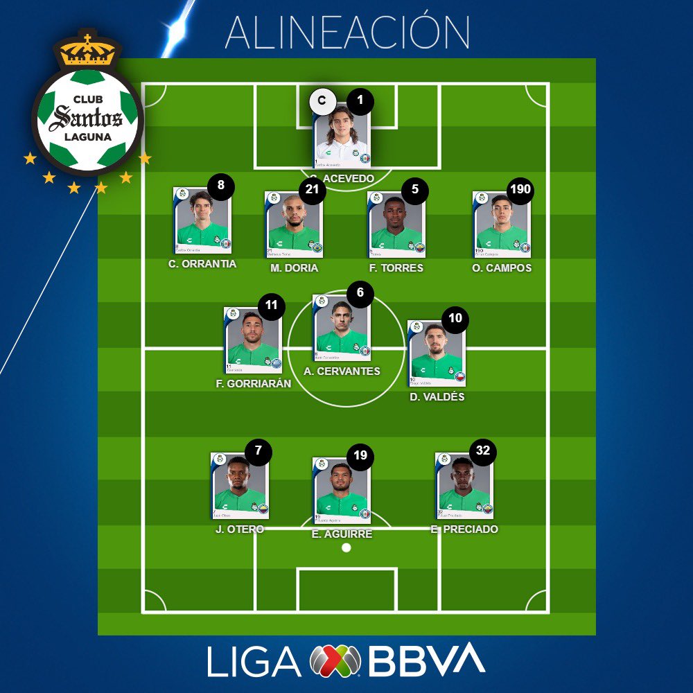 SANTOS: | Acevedo, Torres, Doria, Cervantes, Otero, Orrantia, Valdés, Gorriarán, Campos, Aguirre y Preciado.