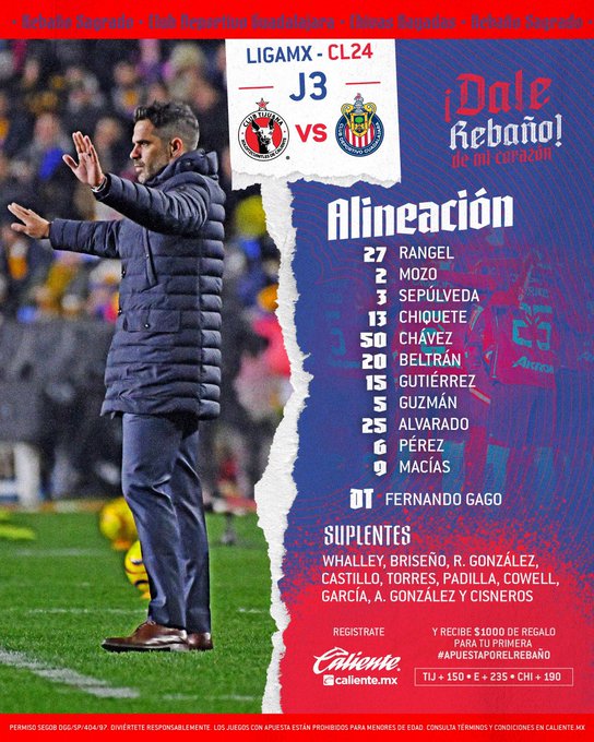 ➡️ Entran @Cc4Official, 'Oso' y, por primera vez con el Guadalajara, José Castillo.