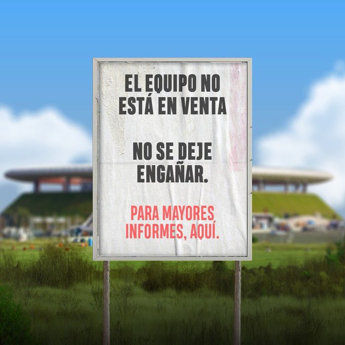"No se hagan bolas", escribió Vergara en sus redes sociales junto a una imagen en la que se lee que "el equipo no está en venta, no se deje engañar".