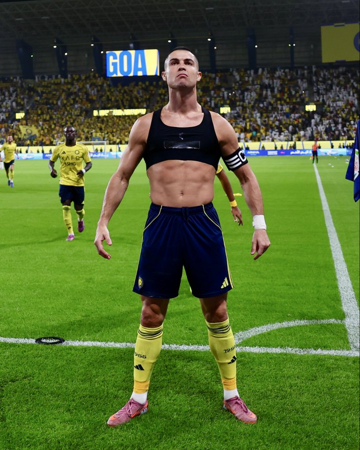 Ronaldo de inmediato corrió hacia uno de los tiros de esquina, se quitó su playera y volteó a ver al público que se encontraba en la tribuna, quienes le entregaron una gran ovación.