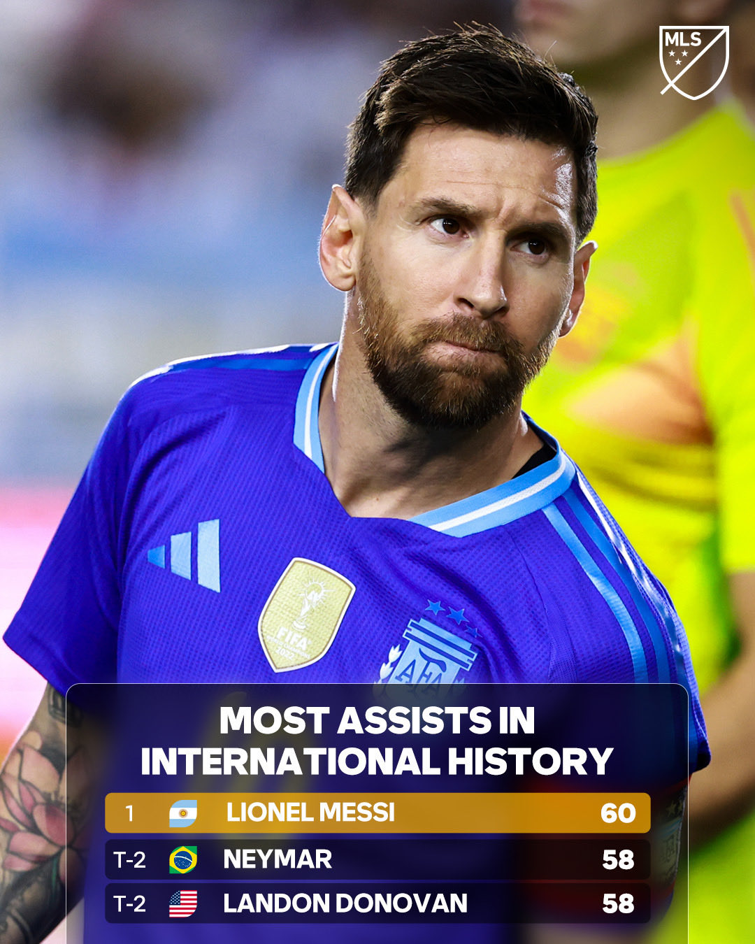 Leo Messi, con las dos asistencias ante Puerto Rico, llegó a 60 a nivel de selecciones, dejó atrás a Neymar y a Landon Donovan que tienen 58 y se convirtió en el futbolista con más asistencias a nivel internacional en la historia.