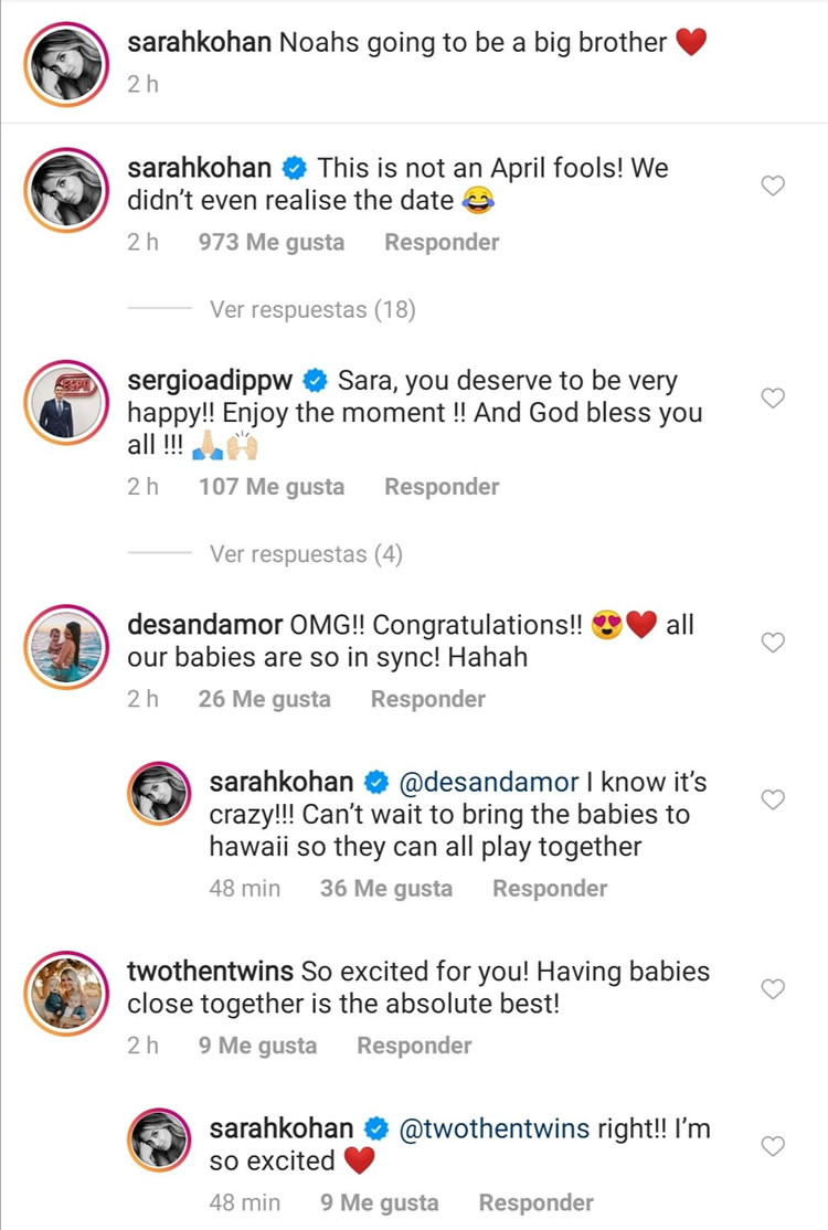 "El número 2 está en el horno" y "Noah va a ser hermano mayor", son los mensajes que pusieron CH14 y Kohan, respectivamente, en la red social en la que el primero tiene 5.3 millones de seguidores y ella 1.5 millones, aunque varios dudaron de la veracidad porque este 1 de abril se celebra el April Fools' Day en Estados Unidos.