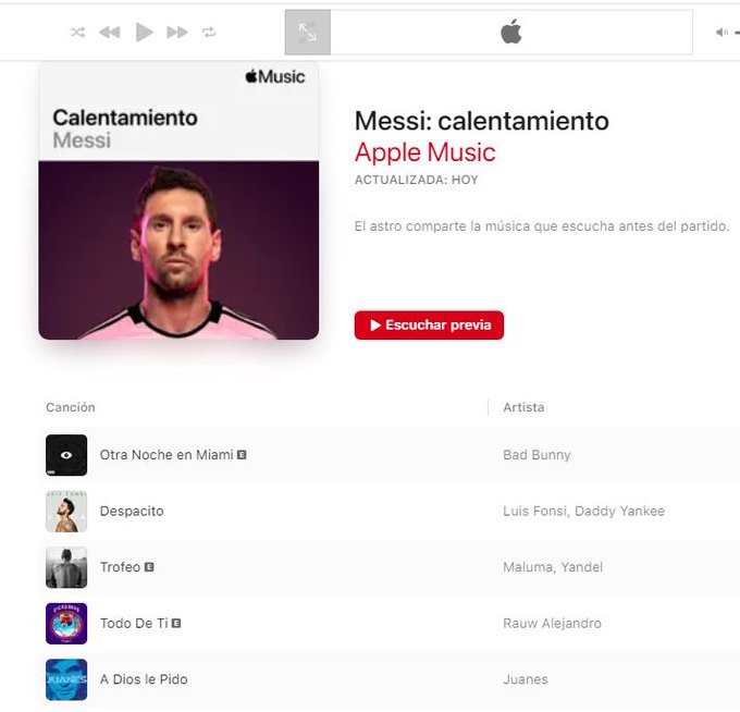 La lista de reproducción de la Pulga lleva por nombre "Calentamiento Messi" y fue creada en Apple Music. En total, el playlist tiene una duración de más de tres horas y con ella dejó claro que tiene un gusto muy variado en la música.