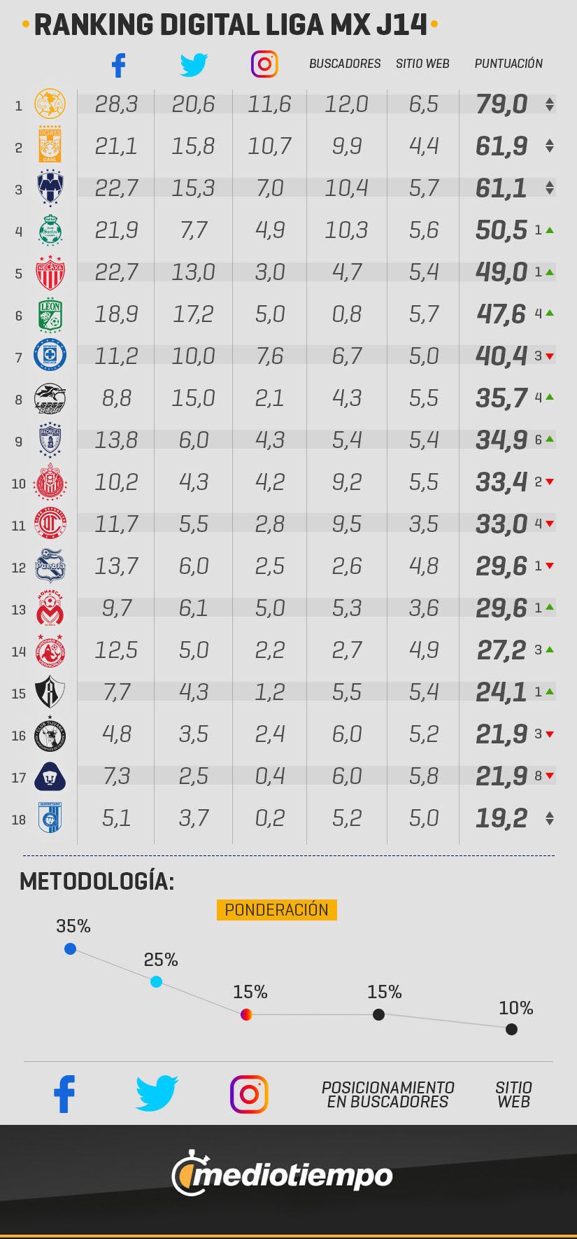 Mediotiempo presenta el Ranking Digital donde se evalúan las diferentes plataformas de los Clubes de Primera División.