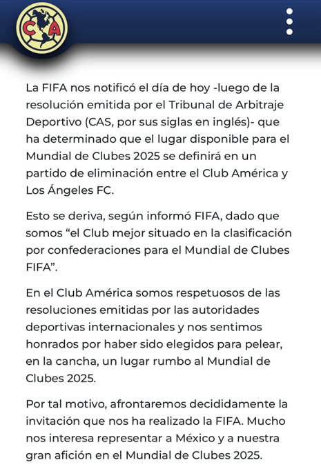 El encuentro entre América y LAFC por el último boleto al Mundial de Clubes 2025 tentativamente se disputará el sábado 31 de mayo y se espera que en los próximos días se confirme.