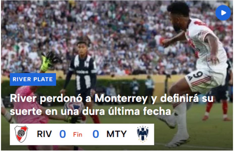 El esperado juego entre Rayados de Monterrey River Plate en el Mundial de Clubes 2025 de la FIFA terminó con empate a cero goles, resultado que generó muchas reacciones tanto en la prensa de México como en la de Argentina.