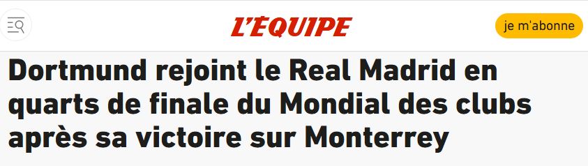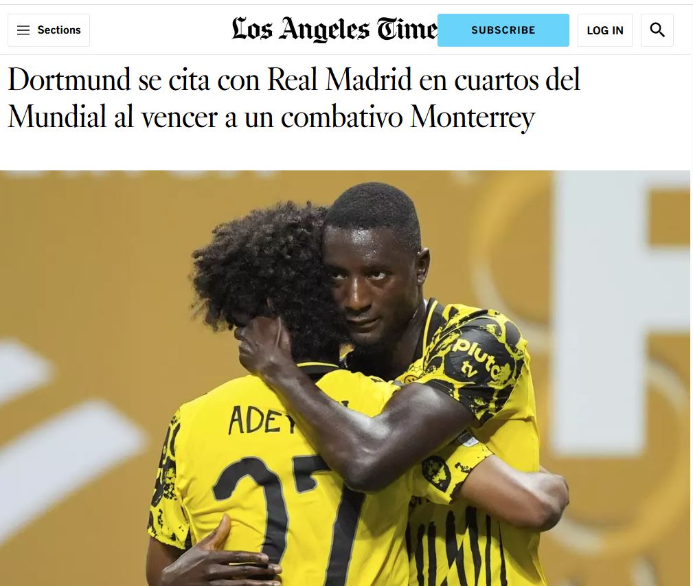 En Estados Unidos, medios como Los Angeles Time también destacaron el nivel de juego que mostró el equipo de la Liga MX pese a perder ante su rival alemán. "Dortmund se cita con Real Madrid en Cuartos del Mundial al vencer a un combativo Monterrey".