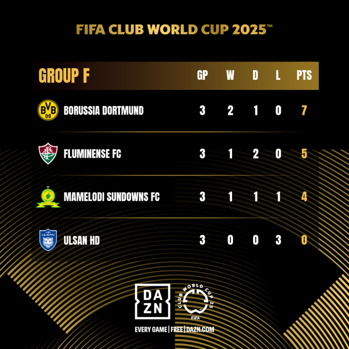 Este empate dejó a Fluminense segundo del grupo F con cinco puntos, dos menos que el Borussia Dortmund, que pasó como líder del grupo a octavos. Mamelodi finalizó con unos dignos cuatro puntos, pero insuficientes para pasar de fase.