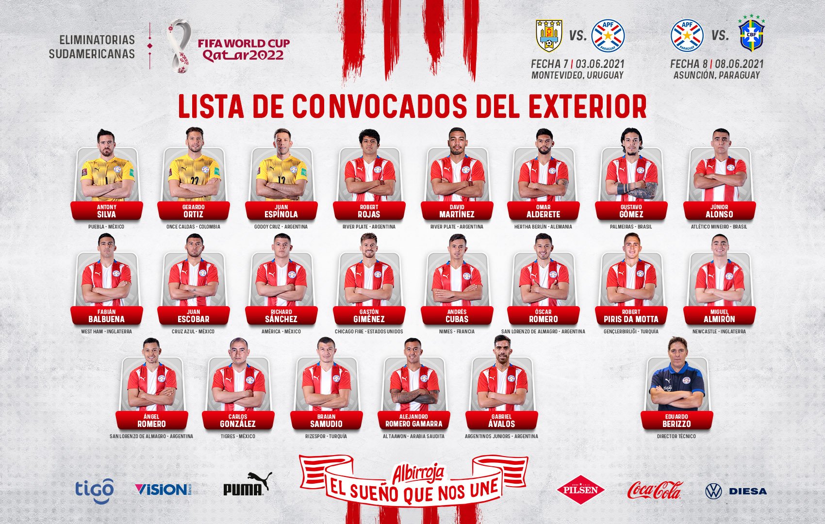 - Delanteros: Ángel Romero (San Lorenzo, Argentina), Carlos González (Tigres, México), Alejandro Romero Gamarra (Al Taawon, Arabia Saudita), Braian Samudio, (Rizespor, Turquía), Gabriel Ávalos (Argentinos Juniors, Argentina).