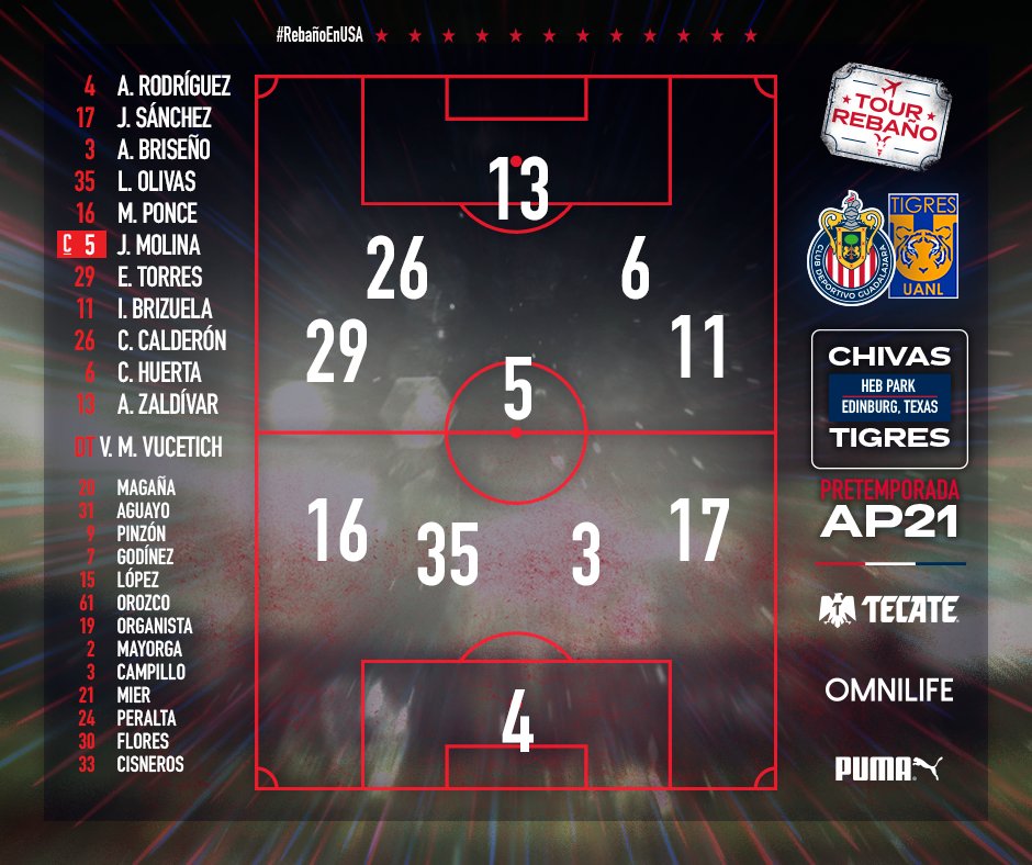 Chivas y Tigres ya disputan el complemento de su partido de preparación rumbo al Apertura 2021 de la Liga MX.