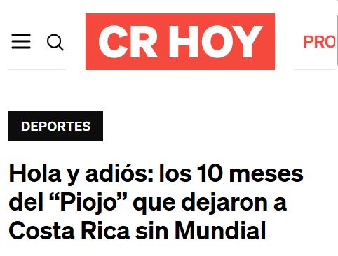 El medio CR Hoy publicó una nota que tituló: "Hola y adiós: los 10 meses del “Piojo” que dejaron a Costa Rica sin Mundial", misma en el que destacó los números que consiguió el mexicano al frente del combinado tico.