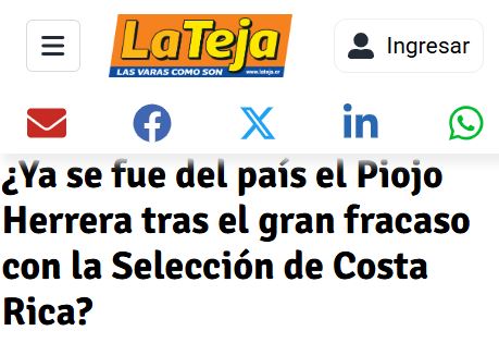Por su parte, el medio La Teja publicó una nota con el título "¿Ya se fue del país el Piojo Herrera tras el gran fracaso con la Selección de Costa Rica?", misma en la que publicó: