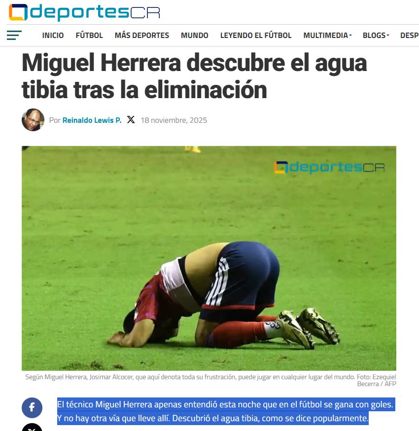 Otros de los medios que criticó de forma severa a Herrera fue Deportes CR, quien publicó: "El técnico Miguel Herrera apenas entendió esta noche que en el futbol se gana con goles. Y no hay otra vía que lleve allí. Descubrió el agua tibia, como se dice popularmente".