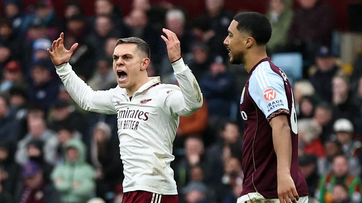El Aston Villa reaccionó y Ollie Watkins, muy activo durante los primeros 45 minutos, se impuso a Piero Hincapié y a Timber, pero cuando tenia todo a su favor, se topó con David Raya, que hizo una parada espectacular tras el disparo del inglés desde el punto de penalti.