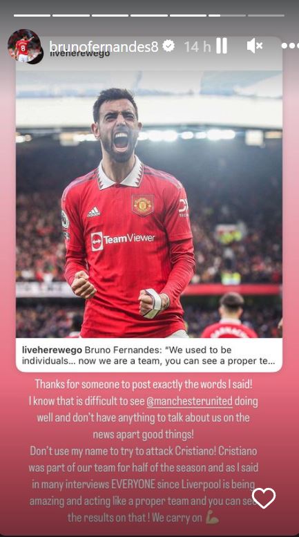 Tras la polémica generada, Bruno Fernandes usó sus redes sociales para aclarar la situación y pedir que no usen su nombre para atacar a su compatriota, el cual ahora juega para el Al-Nassr de Arabia Saudita.