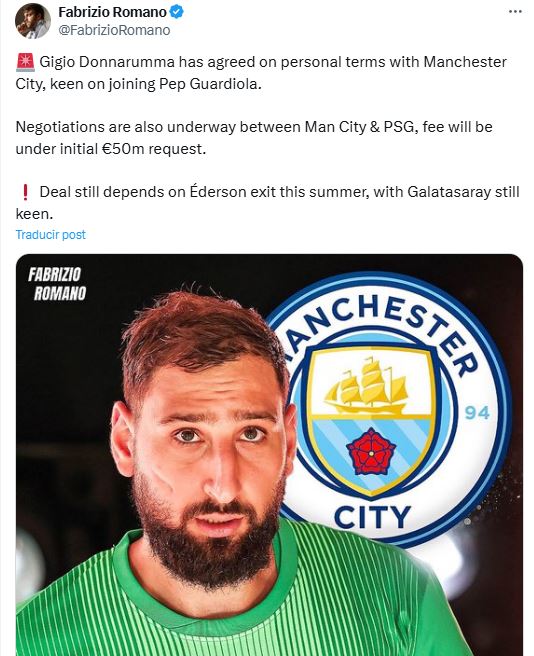 De acuerdo con información dada a conocer por Fabrizio Romano, reconocido periodista italiano, el guardameta "ha llegado a un acuerdo personal" para integrarse al proyecto que es dirigido por Pep Guardiola.