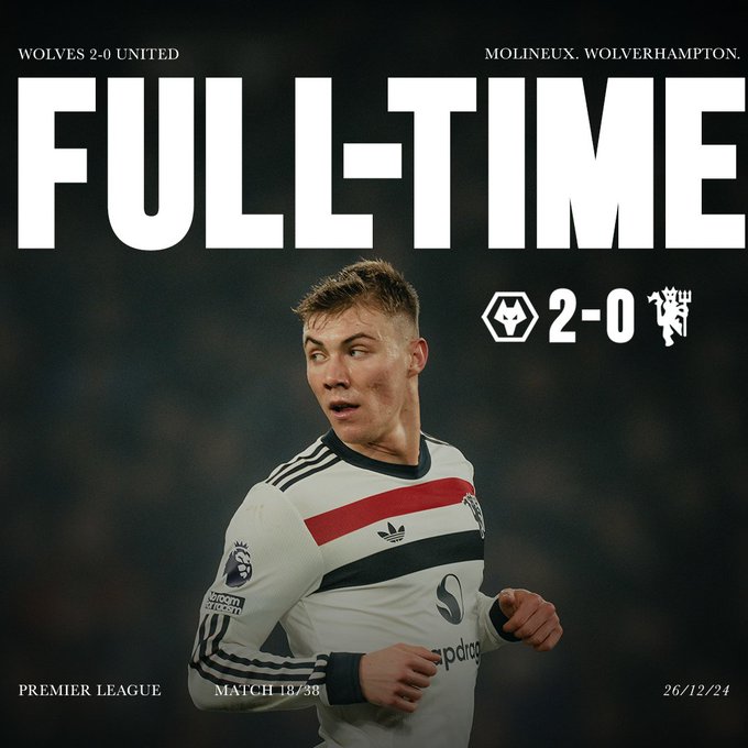 Manchester United no levanta y en el Boxing Day 2024 cayó 2-0 ante el Wolverhampton, equipo que está peleando por no descender en la Premier League.