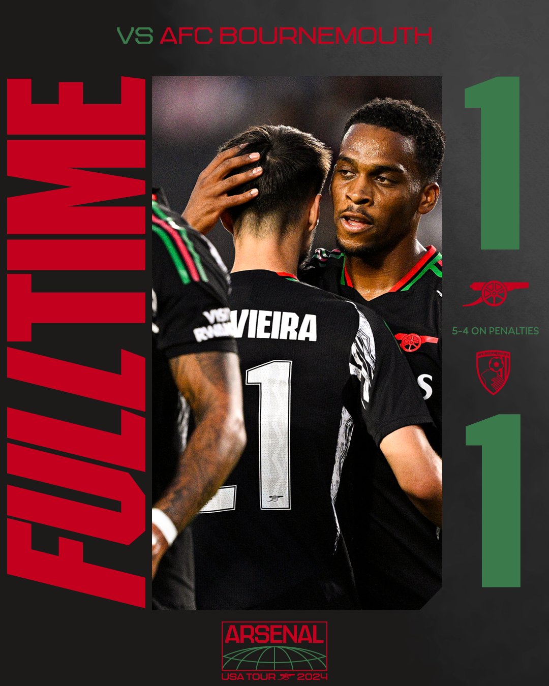 Arsenal enfrentó a Bournemouth en un partido de preparación rumbo al inicio de la temporada y tras empatar 1-1 en el tiempo regular, los dirigidos por Mikel Arteta se impusieron 5-4 por la vía de los penales.